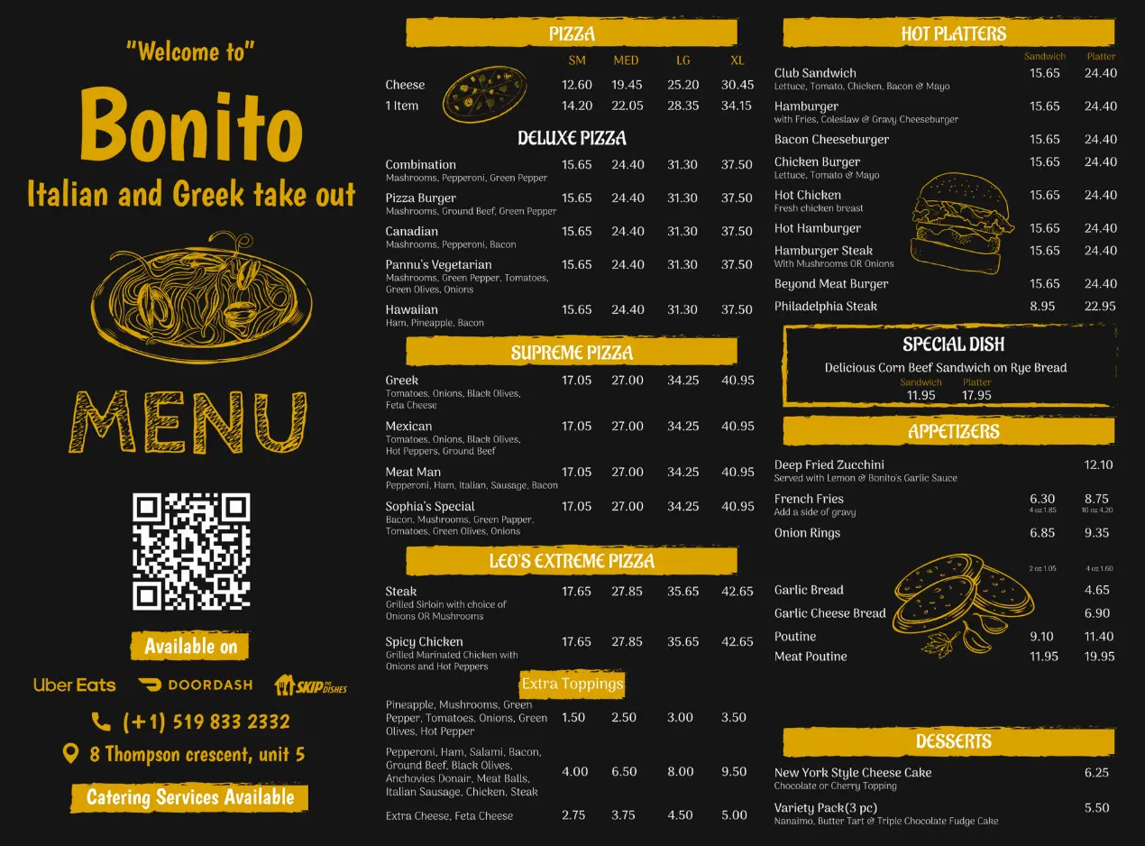 Our menu is a journey through the sun-soaked coasts of Italy and Greece, crafted for food lovers who crave bold flavors and fresh ingredients. From cheesy, oven-baked pizzas and creamy, twirl-worthy pastas to tender souvlaki skewers and crisp, zesty Greek salads, every dish is made to order with passion. Whether you’re in the mood for something comforting, refreshing, or indulgent, you’ll find it here – ready to satisfy your cravings and brighten your day.